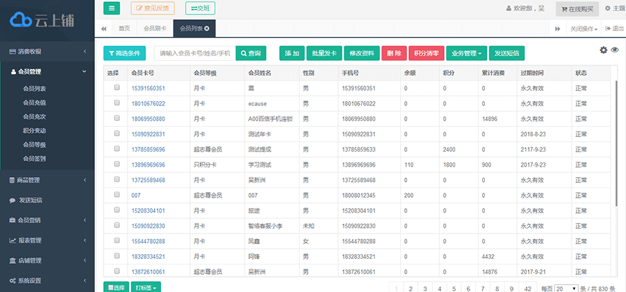 | 基礎功能 | √ | √ | 辦卡、儲值、積分、打折、計次、計時、會員推薦、員工提成、商品管理、進銷存、短信群發、財務報表等 |